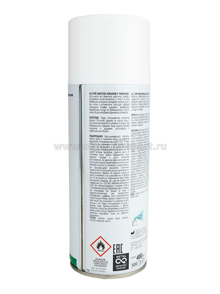Встряхнуть перед использованием. Распылять спрей-заморозку на поврежденный участок на расстоянии 20см (не наносить спрей на одежду), в течение 3-4 секунд. Наносить спрей круговыми движениями во избежание переохлаждения. Не использовать на поврежденных участках кожи и открытых ранах. Не является лекарственным препаратом.
