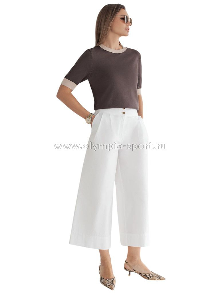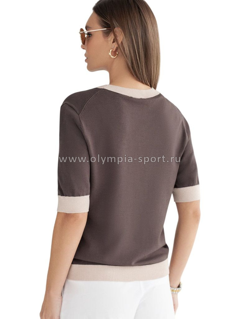 Легкий джемпер кофейного цвета с круглым вырезом идеально подходит на весну и лето. Тонкая вязка из вискозы дарит приятный комфорт и ощущение свежести в теплую погоду. Полуприлегающий крой подчеркивает силуэт, а универсальная длина позволяет сочетать джемпер с разными элементами гардероба. Контрастная отделка с мягким люрексом добавляет стильный акцент, создавая выразительный образ. Деликатное мерцание придает праздничное настроение, но не выглядит слишком ярко или вызывающе. Такой элемент украшения позволяет носить нарядный джемпер и на особых мероприятиях. Джемпер отлично смотрится на больших размерах благодаря продуманному крою и полуприлегающему фасону. Этот джемпер с коротким рукавом станет незаменимой частью гардероба в сезоны, когда хочется легкости и элегантности одновременно. Лаконичный дизайн обеспечивает простоту комбинирования с другими вещами и будет универсальной базой для создания разнообразных комплектов — от офисного до непринужденного городского стиля.