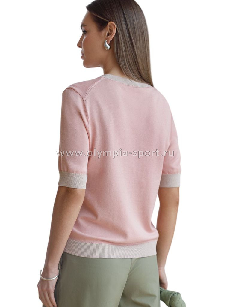 Легкий джемпер светло-розового цвета с круглым вырезом идеально подходит на весну и лето. Тонкая вязка из вискозы дарит приятный комфорт и ощущение свежести в теплую погоду. Полуприлегающий крой подчеркивает силуэт, а универсальная длина позволяет сочетать джемпер с разными элементами гардероба. Контрастная отделка с мягким люрексом добавляет стильный акцент, создавая выразительный образ. Деликатное мерцание придает праздничное настроение, но не выглядит слишком ярко или вызывающе. Такой элемент украшения позволяет носить нарядный джемпер и на особых мероприятиях. Джемпер отлично смотрится на больших размерах благодаря продуманному крою и полуприлегающему фасону. Этот джемпер с коротким рукавом станет незаменимой частью гардероба в сезоны, когда хочется легкости и элегантности одновременно. Лаконичный дизайн обеспечивает простоту комбинирования с другими вещами и будет универсальной базой для создания разнообразных комплектов — от офисного до непринужденного городского стиля.