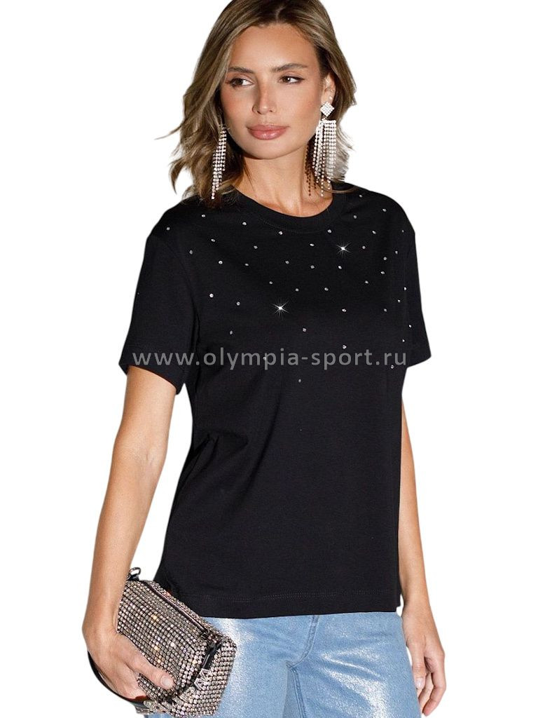 Футболка женская Vilatte D49.124 черный_стразы