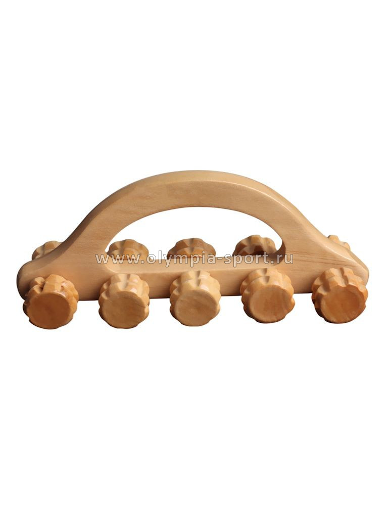 Массажёр деревянный гусеница с ручкой (10 колес, 18*5,5*8см) OT